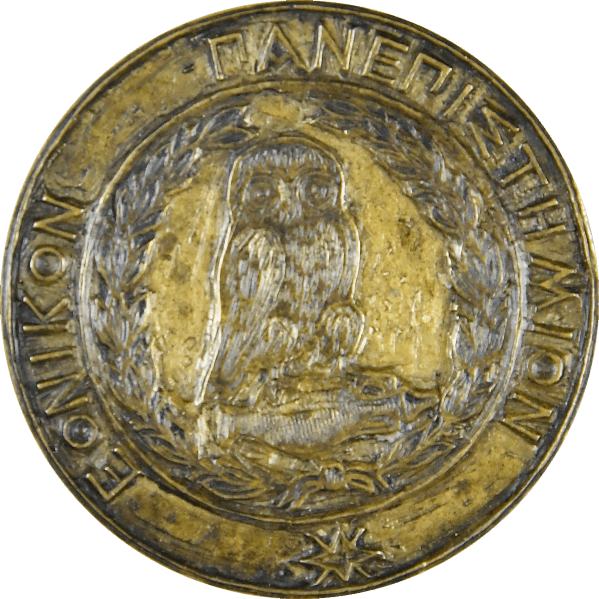 Η δεύτερη σφραγίδα, με την αθηναϊκή γλαύκα να στέκεται πάνω σε έναν αμφορέα, είναι αυτή του Εθνικού Πανεπιστημίου και χρησιμοποιήθηκε από τη μετονομασία του Πανεπιστημίου σε Εθνικόν, το 1862, έως τη συνένωσή του με το Καποδιστριακόν, το 1922.