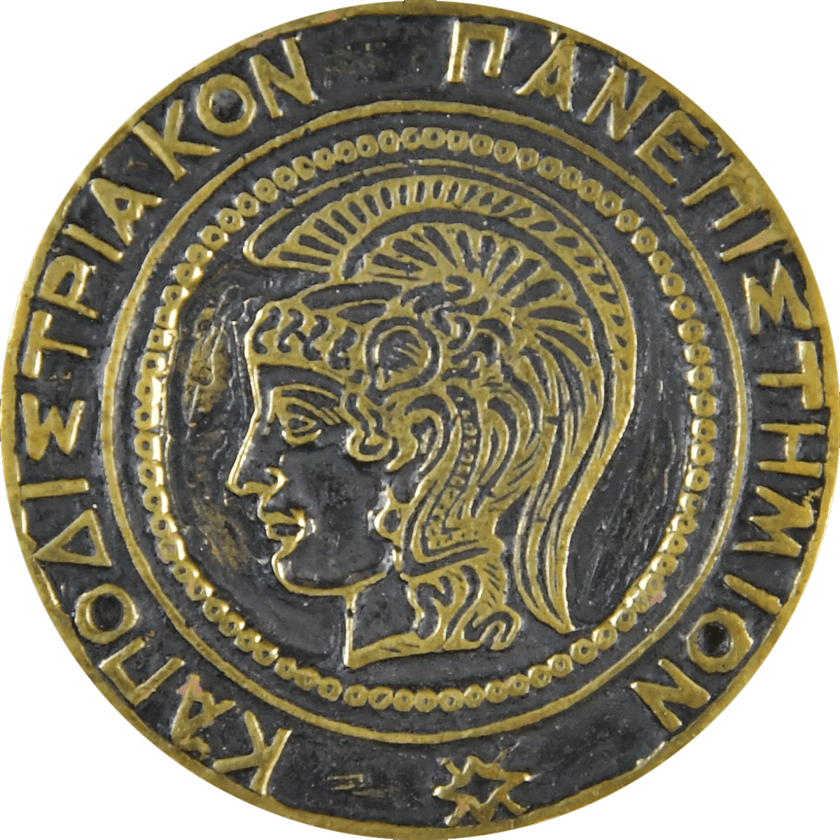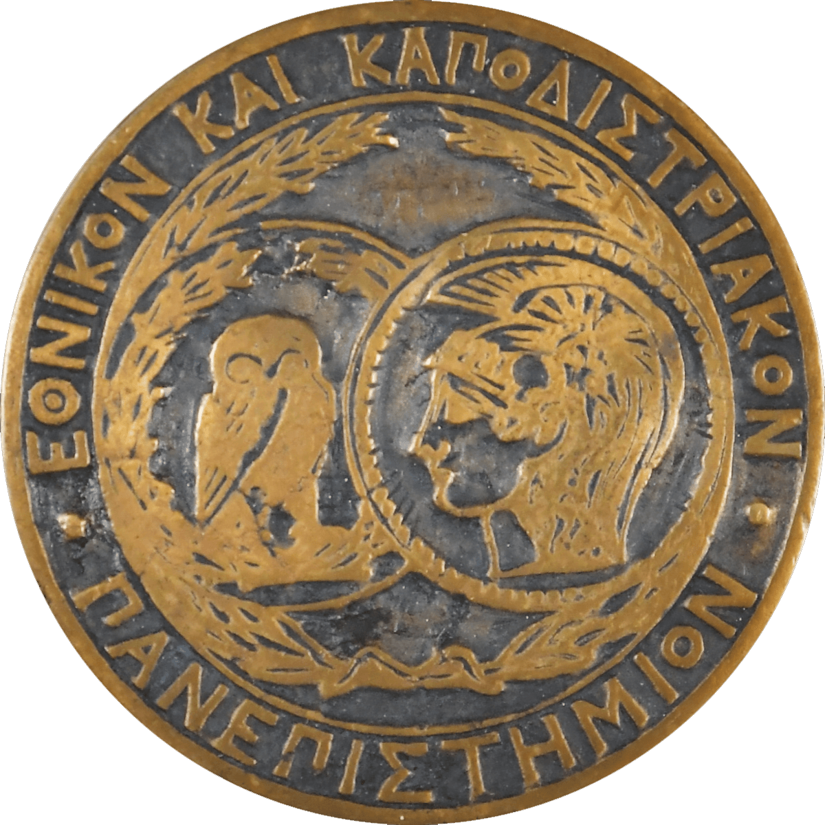 Η τρίτη σφραγίδα, με την κεφαλή της θεάς Αθηνάς, είναι αυτή του Καποδιστριακού Πανεπιστημίου και χρησιμοποιήθηκε παράλληλα με αυτήν του Εθνικού από την ίδρυσή του, το 1911, έως τη συνένωσή του με το Εθνικόν, το 1922.