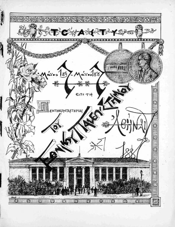 Επετειακό τεύχος του περιοδικού Το Άστυ, αφιερωμένο στον εορτασμό της πεντηκονταετηρίδας από την Ίδρυση του Πανεπιστημίου Αθηνών. Στις σελίδες του τεύχους φιλοξενούνταν άρθρα ιστορικού ενδιαφέροντος, καθώς και αρκετές προσωπογραφίες καθηγητών και ευεργετών του Πανεπιστημίου, σχεδιασμένες από τον ζωγράφο Οδυσσέα Φωκά (1857-1946).