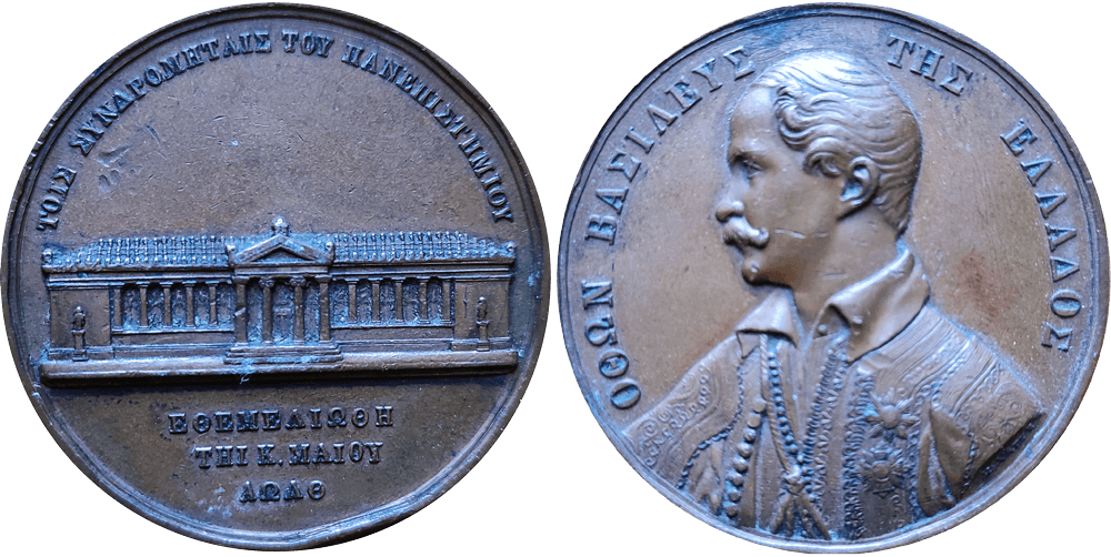 Το Ελληνικό Κράτος απένειμε τιμητικό δίπλωμα και μετάλλιο στα άτομα που προσέφεραν χρήματα για την αποπεράτωση του Κεντρικού Κτηρίου του Οθωνείου Πανεπιστημίου. Ανάλογα με το μέγεθος του ποσού, οι δωρητές διακρίνονταν σε «ευεργέτες» ή απλούς «συνδρομητές».